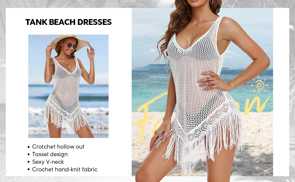 Amazon Com B2prity Beach Bathing Suit Cover Up For Women Sleeveless Crochet Summer Tank Dress Knit Tassels Fringed Swimsuit Coverups White Clothing Shoes Jewelry